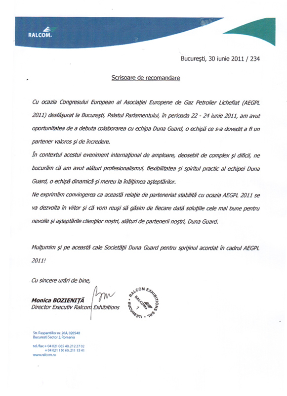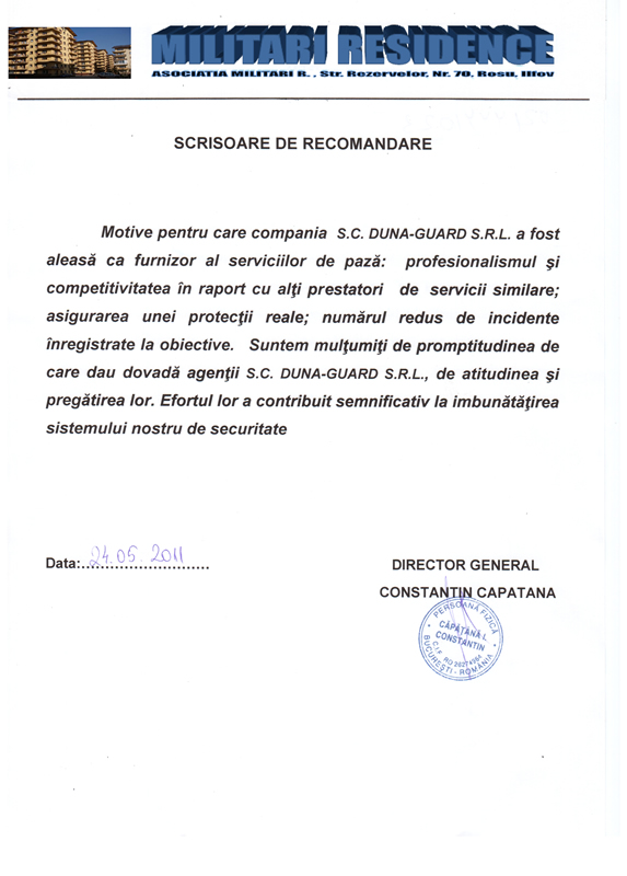 Compania de Securitate. DUNA – GUARD desfasoara activitati de paza a obiectivelor, bunurilor si valorilor in baza Legii 333/2003, fiind autorizata in acest sens de Inspectoratul General al Politiei prin Licenta nr. 1805/P/2011.. citeste tot |